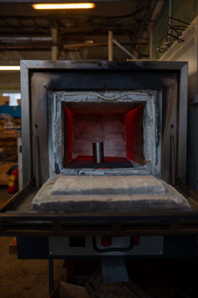 The metal is heated to a high temperature (above its critical point) and then rapidly cooled, usually by quenching in water, oil, or air. This transforms the internal structure of the metal, creating a harder and stronger material. Unlike surface hardening, bulk hardening affects the entire cross-section of the part.